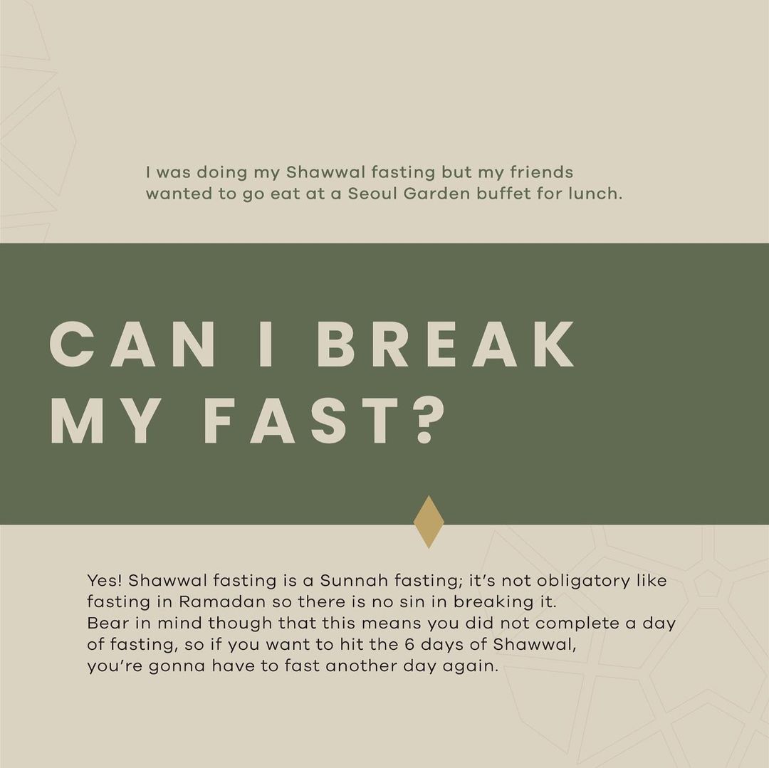 I was doing my Shawwal fasting but my friends wanted to go eat buffet at Seoul Garden for lunch. Can I break my fast?